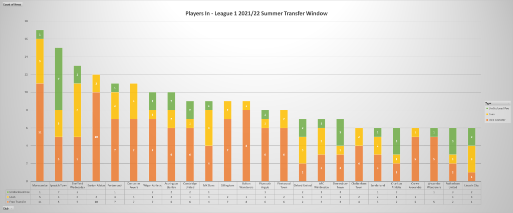 Elsewhere, it was a week dominated by the larger clubs in League One as Ipswich, Sheffield Wednesday, Rotherham, Portsmouth, Sunderland, and Wigan all added to their squads. Ipswich signed three, Hayden Coulson joined on loan from Middlesbrough and Cameron Burgess on an undisclosed fee from Accrington, while Kyle Edwards’ move to the club from West Brom was the 200th transfer in League One this summer. Portsmouth secured two new players in Louis Thompson (free transfer) and Joe Morrell (undisclosed fee) from Norwich and Luton respectively. Sunderland continued their focus on young players with Premier League pedigree, bringing in Frederik Alves on loan from West Ham and Dennis Cirkin on an undisclosed fee from Tottenham. Rotherham followed with the signing of Arsenal left back Tolaji Bola on an undisclosed fee, as did Wigan who signed Newcastle centre back Kelland Watts on a season-long loan. Meanwhile, Sheffield Wednesday secured winger Sylla Sow on a free transfer from Dutch side RKC Waalwijk.