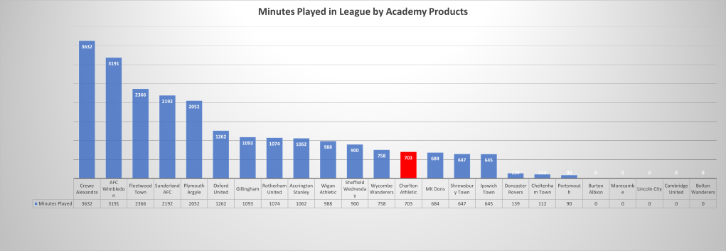 Despite Adkins’ decent reputation for blooding young talent, the use of academy players in the first team is at its lowest in recent years. From the academy, only Elerewe has been handed his league debut and has featured sparingly. Charles Clayden, signed from Leyton Orient when the closed their U23 team, has also featured but seems unlikely to feature in the league as he has Leko, Kirk, Jaiyesimi and Blackett-Taylor ahead of him in the pecking order. When compared to the rest of League 1, Charlton sit in the bottom half of the table for minutes played by Academy graduates. Far below Crewe and AFC Wimbledon and even high-flying Sunderland and Plymouth.
