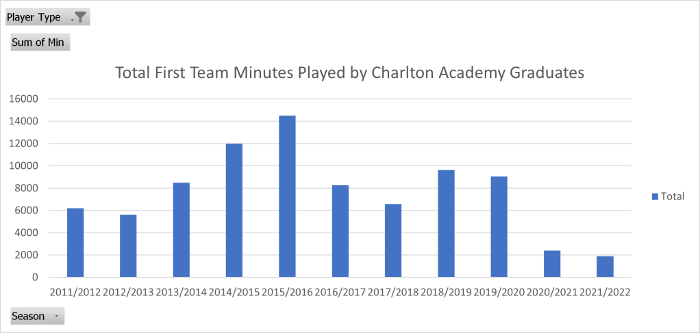 Another area Garner will be tasked with improving is the academy. Despite some exciting cameos, Charlton’s academy has faltered in the last two seasons. Minutes played by academy graduates reached a ten-year low last season at just 1894 minutes, in the previous decade the average has been at least three times higher. Garner’s record looks fairly promising in this regard, 25% of total minutes played by his Swindon team last season were given to Academy or U23 players. At Charlton, that total was just 7%.